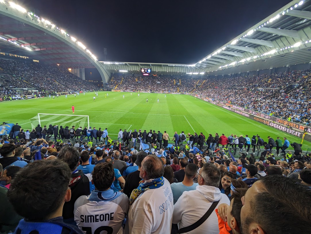 Je koniec apríla a skoro stovka fanúšikov je nachystaná na tento historický moment pre Neapol. Po 11 rokoch môže SSC konečne získal titul Serie A. Spolu s Laziom všetko zariadili tak, že práve náš zápas v Udinese môže byť ten rozhodujúci. Napriek tomu, že sa zápas dvakrát prekladal, nikto nestratil svoje nadšenie a vzrušenie. Črtal sa pre všetkých jedinečný zážitok.