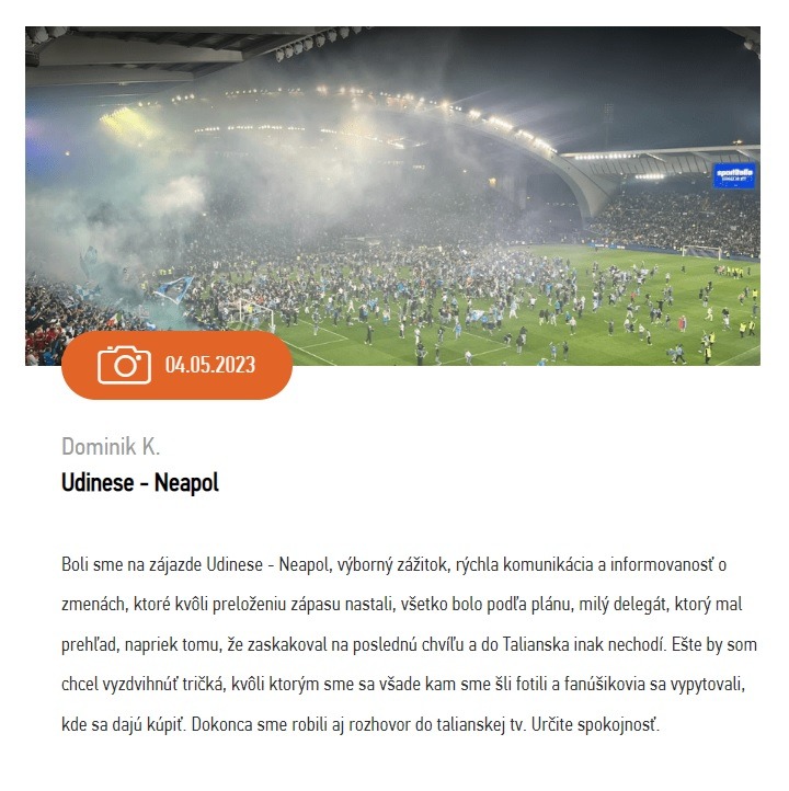 Po príchode do Udinese sme strávili poobedie v tomto krásnom talianskom meste, objavujúc jeho kultúru, pamiatky a lahodnosti talianskej kuchyne. Pre fanúšikov bolo tiež veľmi dôležité prežívať atmosféru predzápasového dňa. Mali sme na sebe zápasové tričká z nášho eshopu Futbalovedarceky, vďaka ktorým nás v meste na každom kroku zastavovali fanúšikovia SSC a chceli sa s nami fotiť. Dokonca sme ako skupina urobili rozhovor do neapolskej TV.